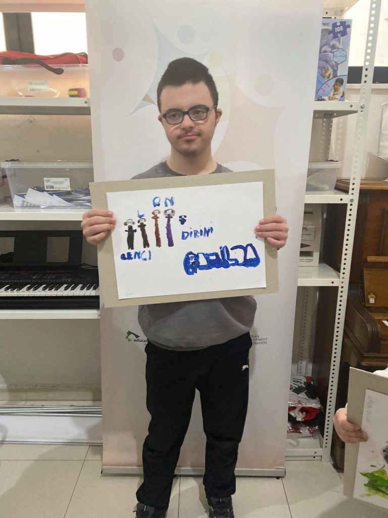 The event was held at the Down Syndrome Kosova center together with activists Marigona Sadiku volunteer Dina Surdulli and Director Sebahate Hajdini Beqiri.